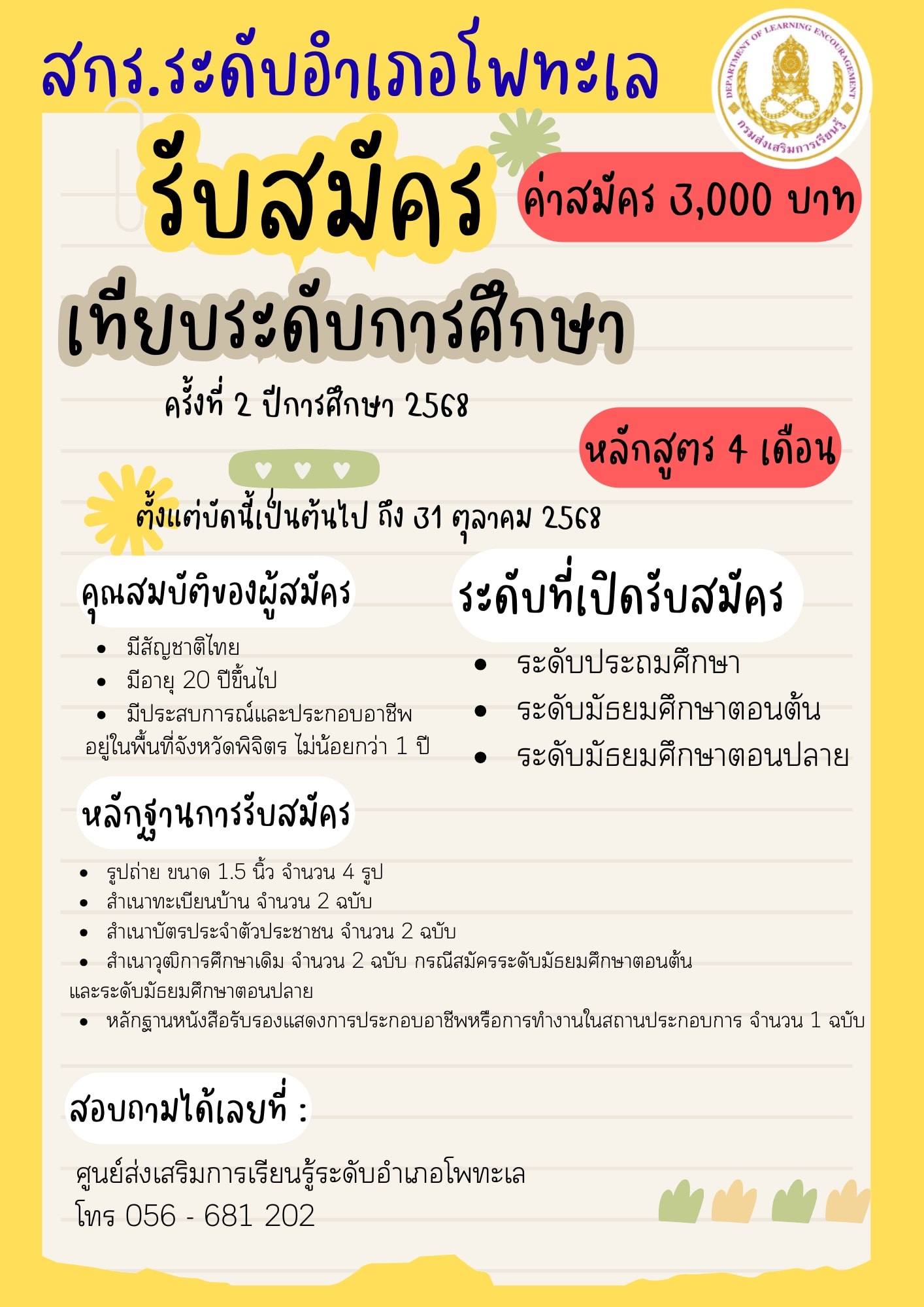 วันที่ 28 -30 พฤษภาคม 2568 นางสาวมาลัย เมืองทอง ผู้อำนวยการ สกร.ระดับอำเภอโพทะเล สังกัด สกร.ประจำจังหวัดพิจิตร เข้าร่วมประชุมชี้แจงแนวทางการดำเนินงานพัฒนาระบบการประกันคุณภาพภายในและการนำมาตรฐานการศึกษาตามที่กระทรวงศึกษาธิการประกาศกำหนดไปใช้ในการประกันคุณภาพภายในสถานศึกษาสังกัดกรมส่งเสริมการเรียนรู้ กลุ่มเป้าหมายพื้นที่ภาคเหนือ ระหว่างวันที่ 28-30 พฤษภาคม 2568 ณ โรงแรมดิเอ็มเพรส เชียงใหม่ จังหวัดเชียงใหม่